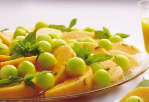 Вот, например, замечательный салат с дыней, в котором она, несмотря на сладкий вкус, служит овощным компонентом.