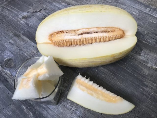 Калорийность дыни в 100 г составляет всего 30,81 ккал. Это немного ниже, чем у сорта Торпедо, поэтому этот сорт также более полезен для диет, но не забывайте, что он менее сладкий. Он не содержит много сахара, и хотя он вкусный, он все же уступает по вкусу сорту Торпедо.