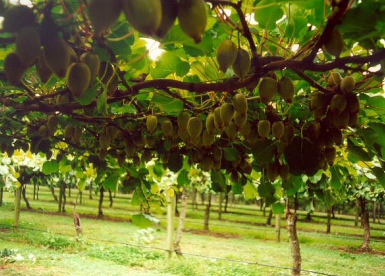 Чтобы вырастить киви, из столбов устраивают решетки и натягивают между ними веревку