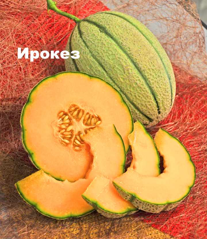 - «Ирокез». Сорт происходит из растения из Восточной Америки. Характерной чертой являются крупные темно-зеленые листья и наличие длинных ресниц. Плоды среднеспелые, на кожуре крупноячеистые. Вес плода до 1,7 кг, имеет овальную форму. Сорт отлично противостоит многим заболеваниям дынь и тыкв.